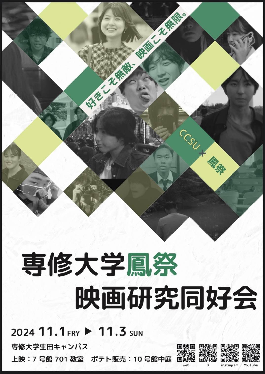 という訳で今回は学生映画を紹介していく。いつもラジオに出てくれているタイラーとジンジャーが手伝っている専修大学映画研究同好会での学祭上映会に呼んでいただいた。当日は天候も良く、映研の部員たちは中庭の模擬店でポテトも売っていた。